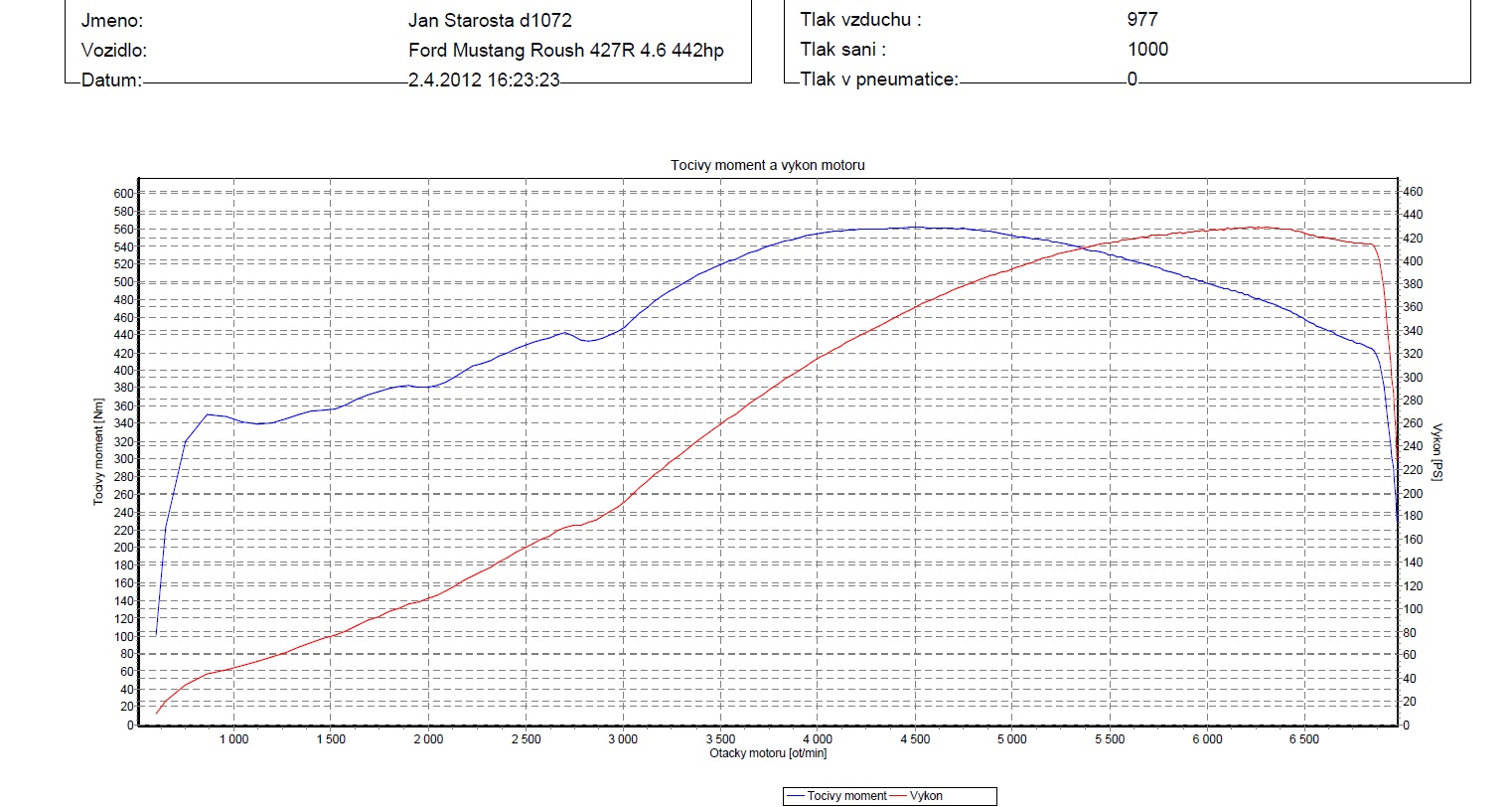 Že Roush nemluví do vzduchu jsem si ověřil na zkušebně - schází mi pohých 5 koní - ale to přikládám syrovosti auta. zde GRAF ze zkušebny: