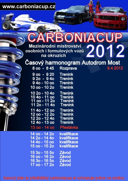 Ahoj, kdo je trochu alespoň nadšenec do rychlé jízdy tak ať přijede nebo alespoň na kukačku. Začínáme celý seriál Carbonia Cup a to v Mostě 09.04.2012 zde více info: http://www.carboniacup.cz/index.php?sel ... &menuID=65 program zde: Příloha: Kdo jede: Karlos démon Honza Roush Petr a já , ale pozor jedu s Trak Pak (už dost dlouho stál a to mu nesvědčí - nyní mám již najeto 2000 mil a poprvé vyměněný olej). Shelby bude jezdit asi jen sprinty Dnes dostal Trak Pak pořádné disky a pneu a menší kontrola a malý test: zde video z testu: a foto z dnešního poledne Příloha: