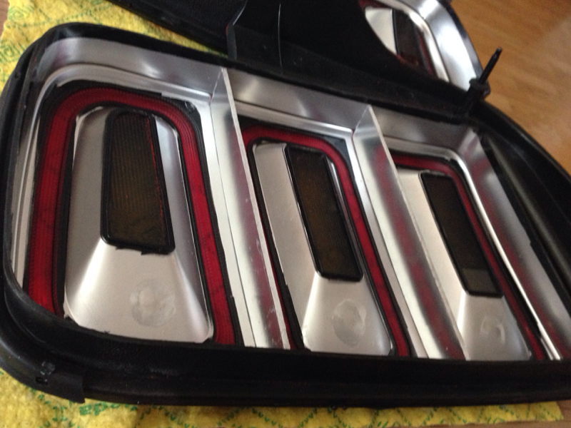 V neděli jsem měl zase chvilku čas tak jsem zase trosku pokročil se světly. Blinkre už teda jsou oranžové a teď přesunout brzdové a mlhovku k potkáváčkám do těch obrysových segmentů. Nejdřív ale menší úprava zevnitř ať hezky svítí - nástříkal jsem chromovou barvou - ten černej plast ty LED docela utlumoval. A udělal jsem i přepážky ať nesvítí vedlejší i segment když zapnu mlhovku.