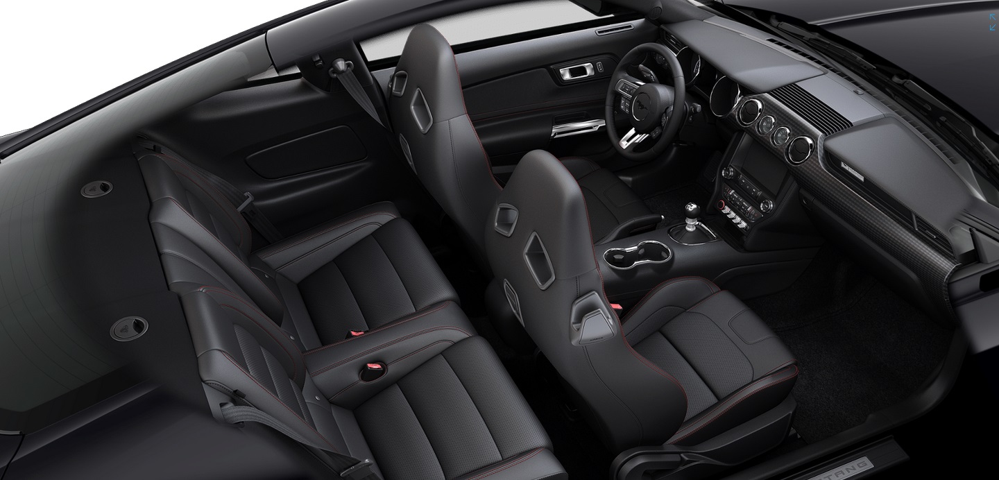•Unique door panel inserts and premium carpet featuring red contrast stitching